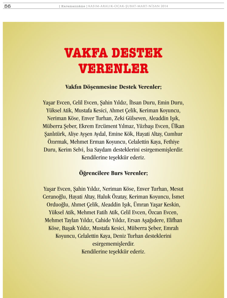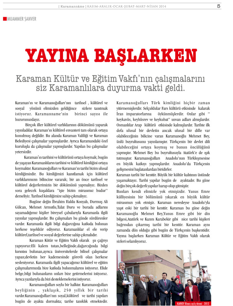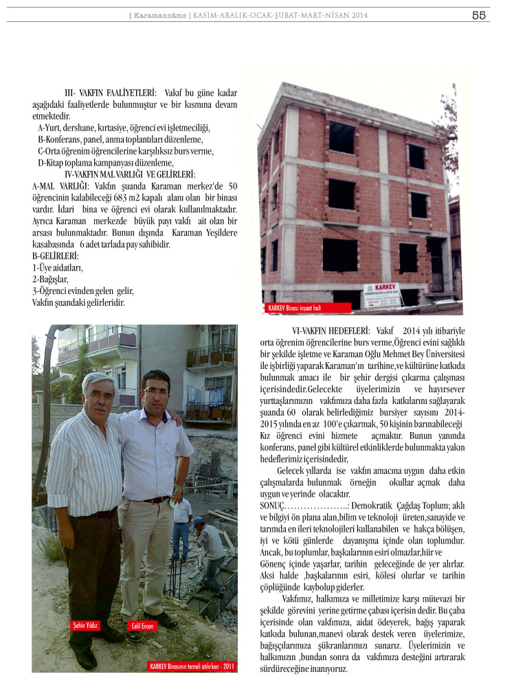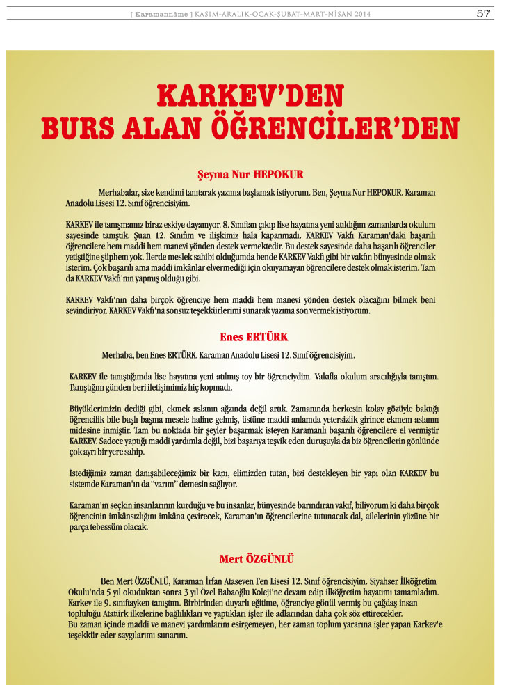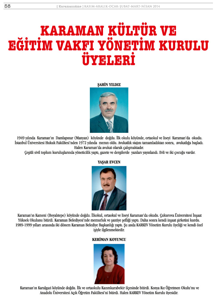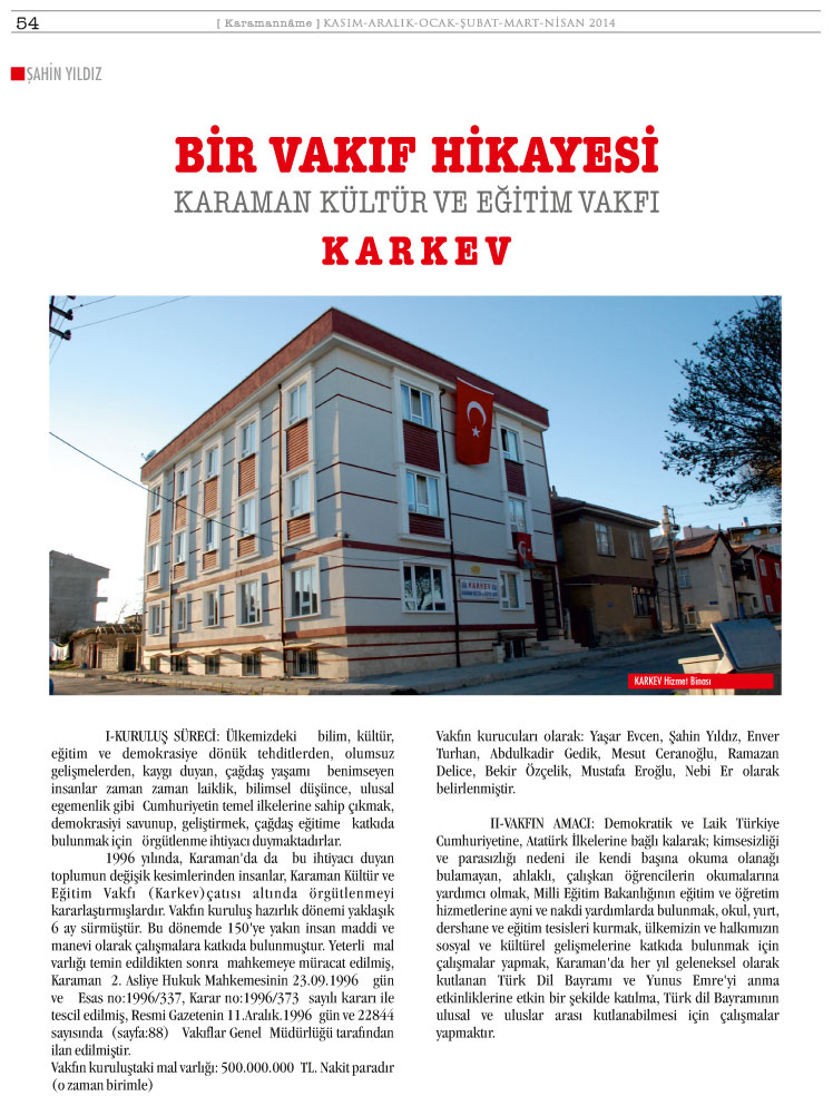 KARAMAN KÜLTÜR VE EĞİTİM VAKFI (KARKEV) 15.OLAĞAN GENEL KURUL İLANI