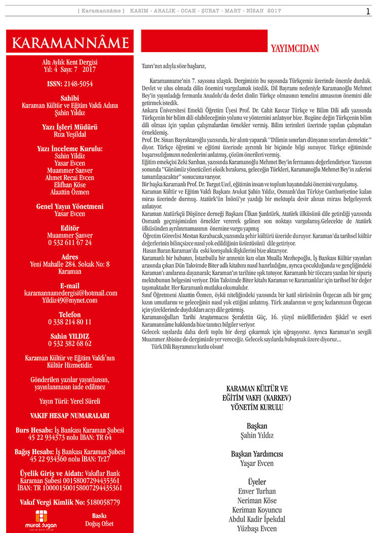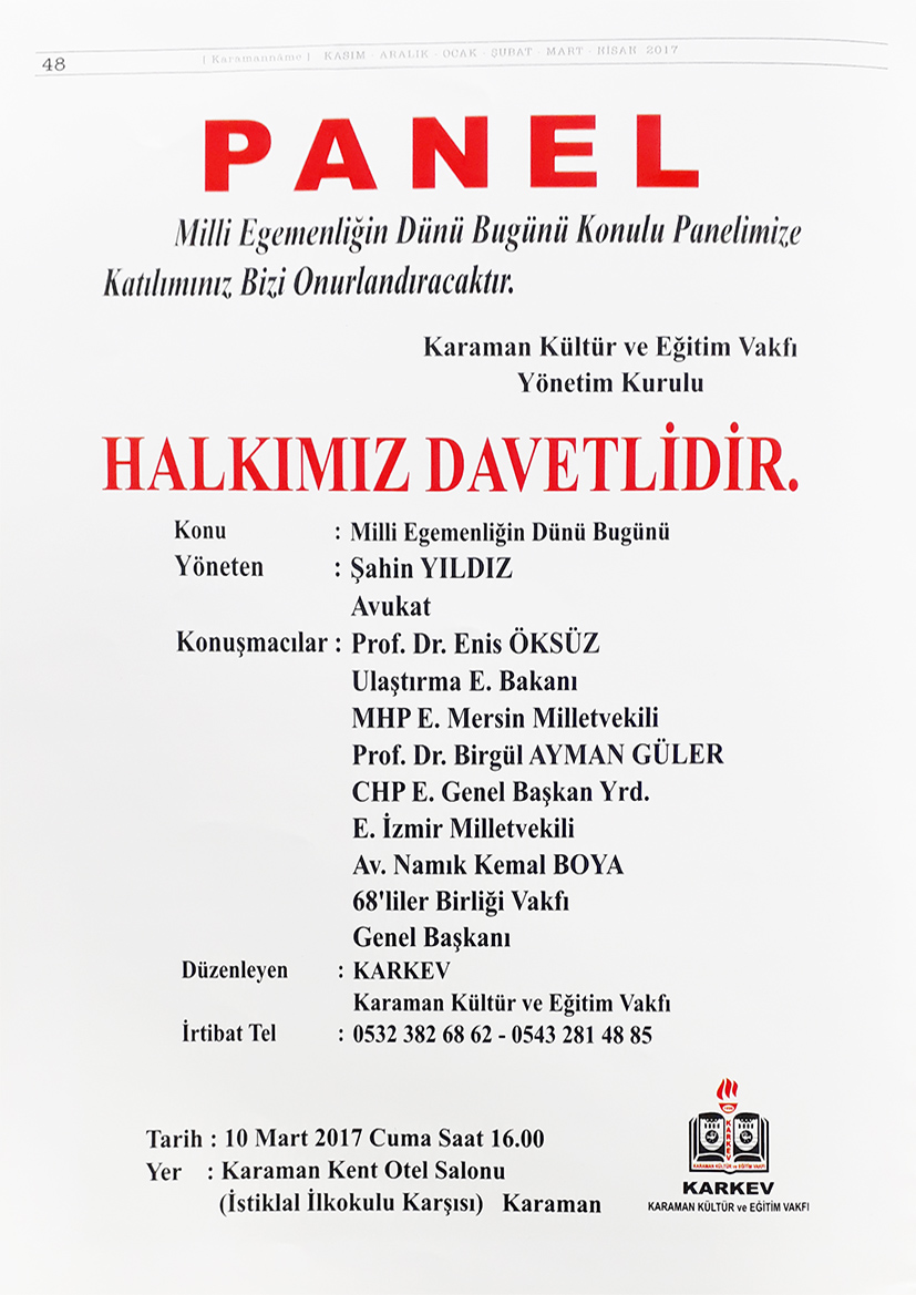 KARAMAN KÜLTÜR VE EĞİTİM VAKFI (KARKEV) 15.OLAĞAN GENEL KURUL İLANI