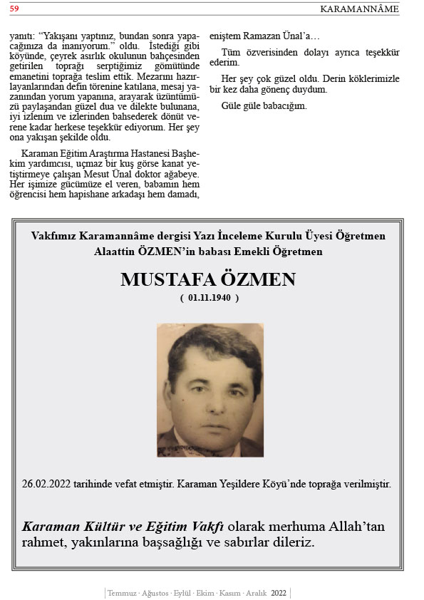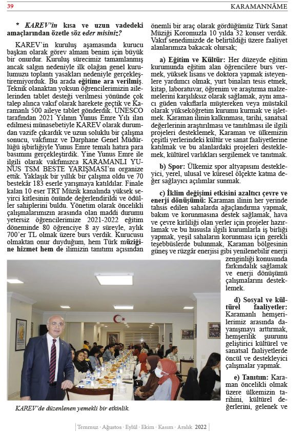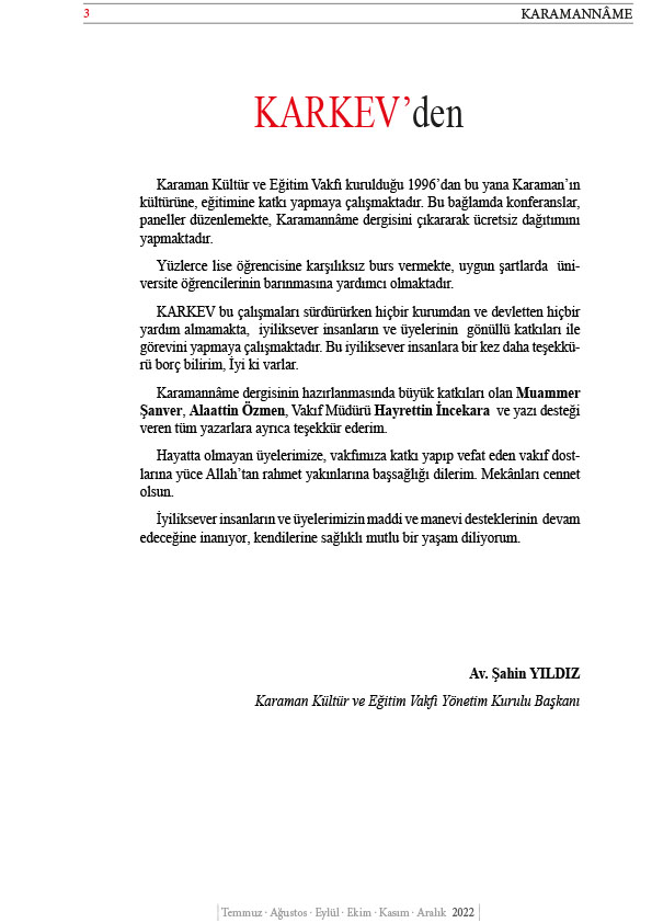 KARAMAN KÜLTÜR VE EĞİTİM VAKFI (KARKEV) 15.OLAĞAN GENEL KURUL İLANI