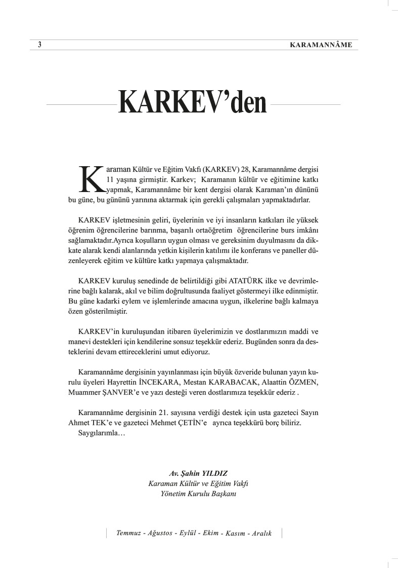 KARAMAN KÜLTÜR VE EĞİTİM VAKFI (KARKEV) 15.OLAĞAN GENEL KURUL İLANI