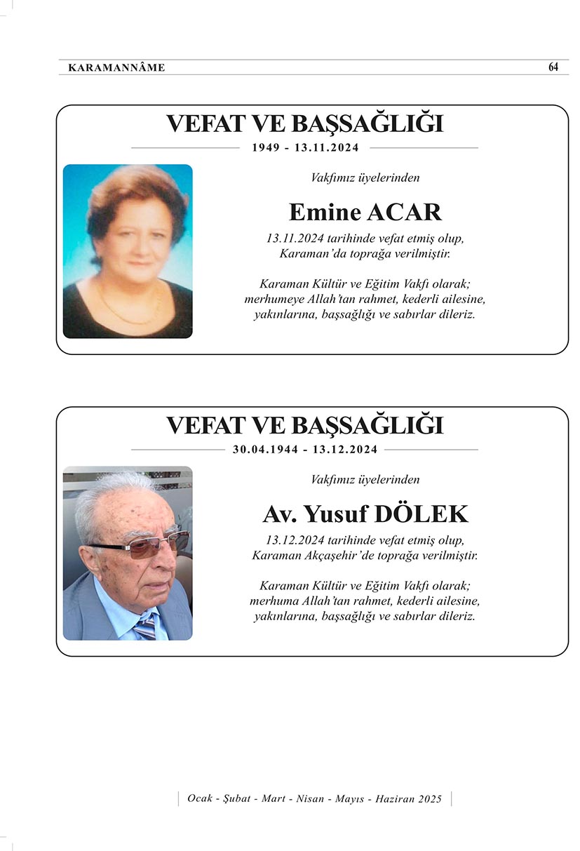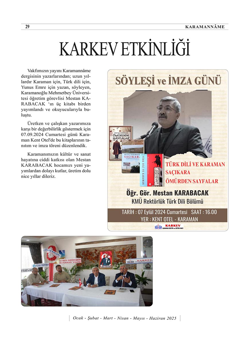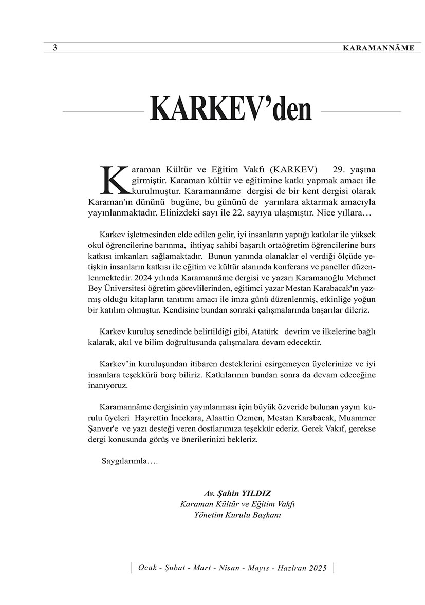 KARAMAN KÜLTÜR VE EĞİTİM VAKFI (KARKEV) 15.OLAĞAN GENEL KURUL İLANI