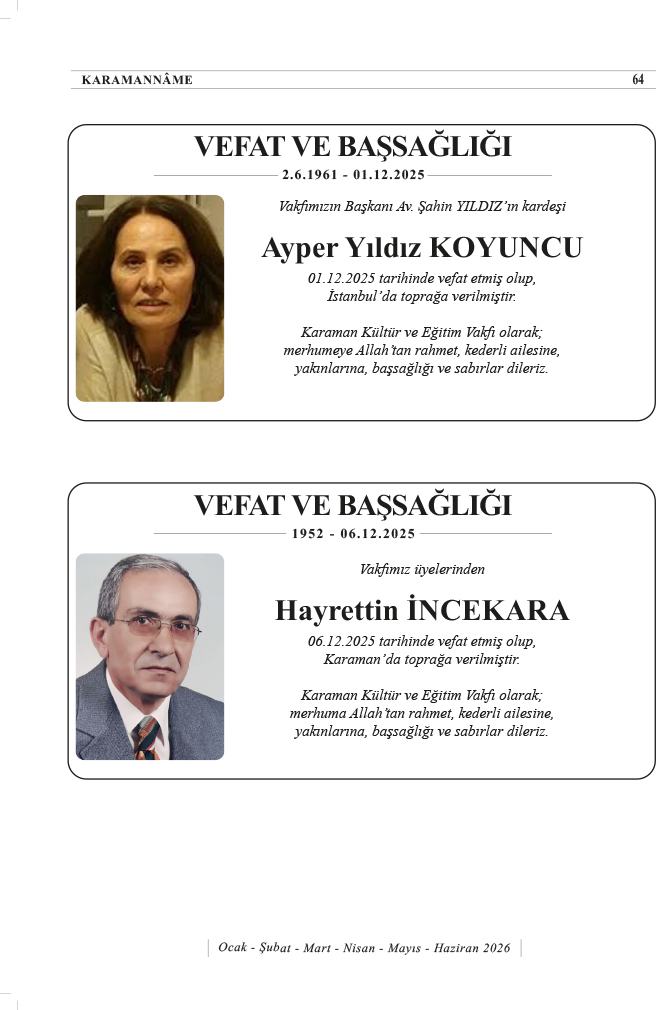 KARAMAN KÜLTÜR VE EĞİTİM VAKFI (KARKEV) 15.OLAĞAN GENEL KURUL İLANI