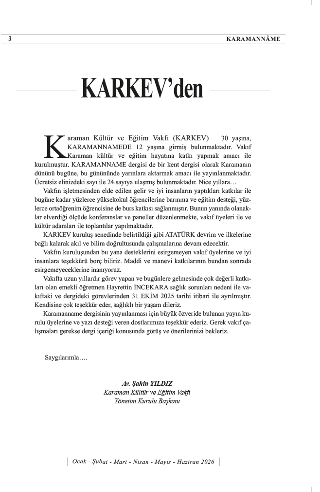 KARAMAN KÜLTÜR VE EĞİTİM VAKFI (KARKEV) 15.OLAĞAN GENEL KURUL İLANI